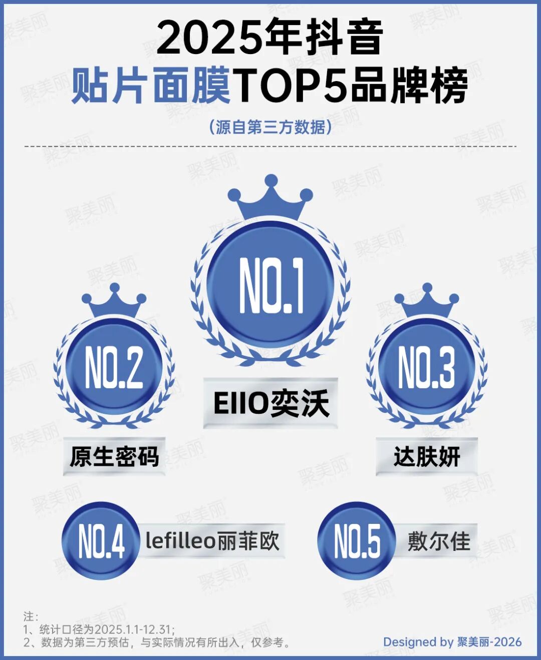 涂抹面膜赛道中,福州纯朴科技旗下孵化的Ell排名第五,造物者位列第八;新晋品牌VEIRFOO同样表现亮眼,该品牌自称韩国院线品牌,起盘仅数月便斩获数亿GMV,成功上榜并居于第12位。