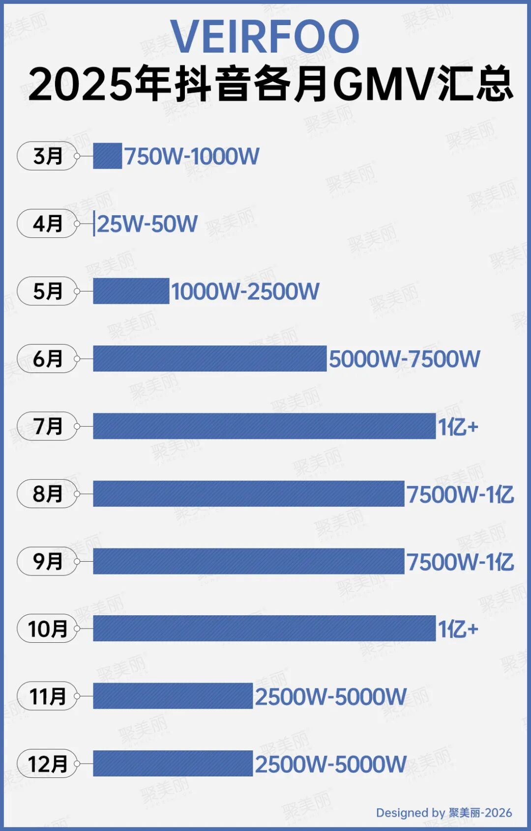 第三方数据显示,VEIRFOO入驻首月GMV高达750W-1000W,7月GMV更是突破1亿+,一举跻身美容护肤榜TOP5、全平台总榜第8。