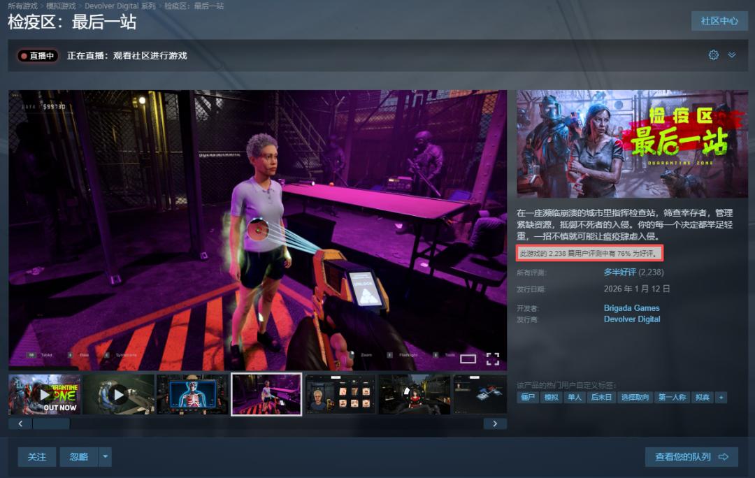 然而,正如许多备受期待的游戏所经历的那样,《检疫区:最后一站》在2026年1月12日正式发售后,其表现并未完全达到“完美”的想象。