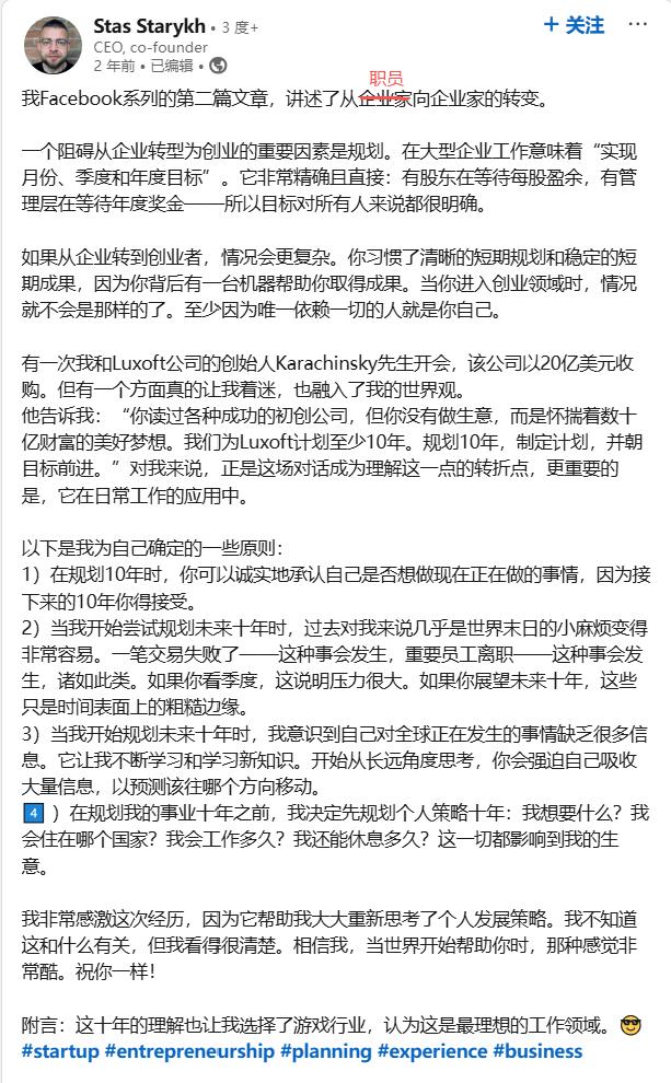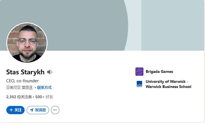 Brigada Games的CEO Stas Starykh是从销售开始做起的,这与我们平时认为的“游戏人”不同。