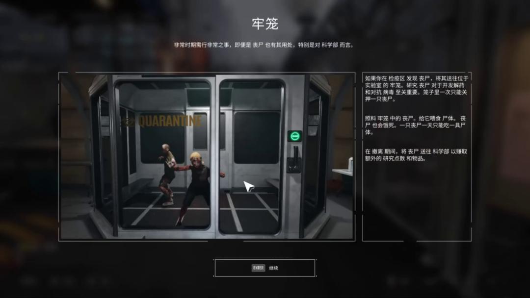除了常规的奖励,《检疫区:最后一站》还有一种回报丰厚的方式——“圈养丧尸”。玩家可以将检疫区内确认感染并变异的人员圈禁起来,通过每日喂食尸体维持其“存活”状态。到了定期运送的日子,这些活体样本可以被送往高级研究机构,以换取大量的资金和研究点数。