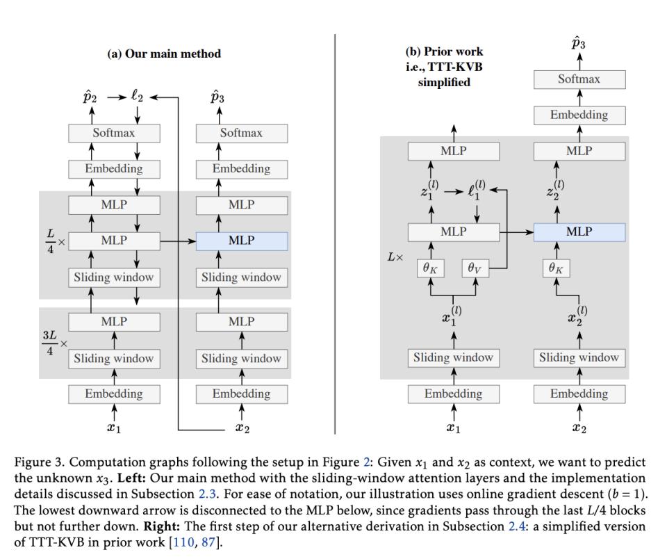 所以,TTT‑E2E一方面把batch的大小做到相对较小。而且还保留滑动窗口注意力作为短期记忆的方法。窗口注意力像手电筒,保证你在一个更新块内至少还看得见最近的上下文,从而让 block 内的预测不至于崩坏。