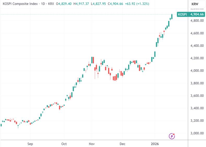 (KOPSI今年12个交易日全部收涨,来源:TradingView)
