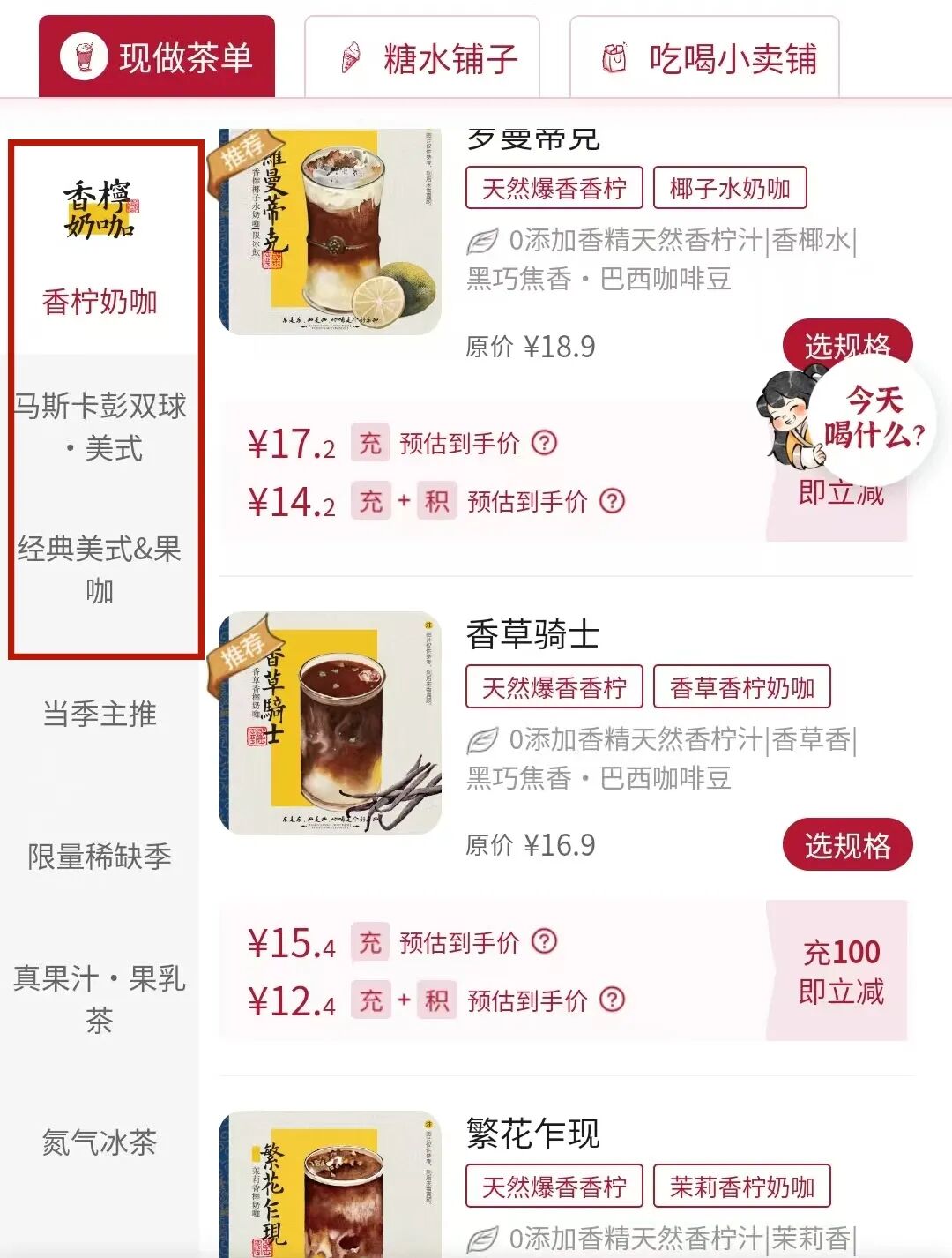 茶颜咖啡,主打“香柠+花香”