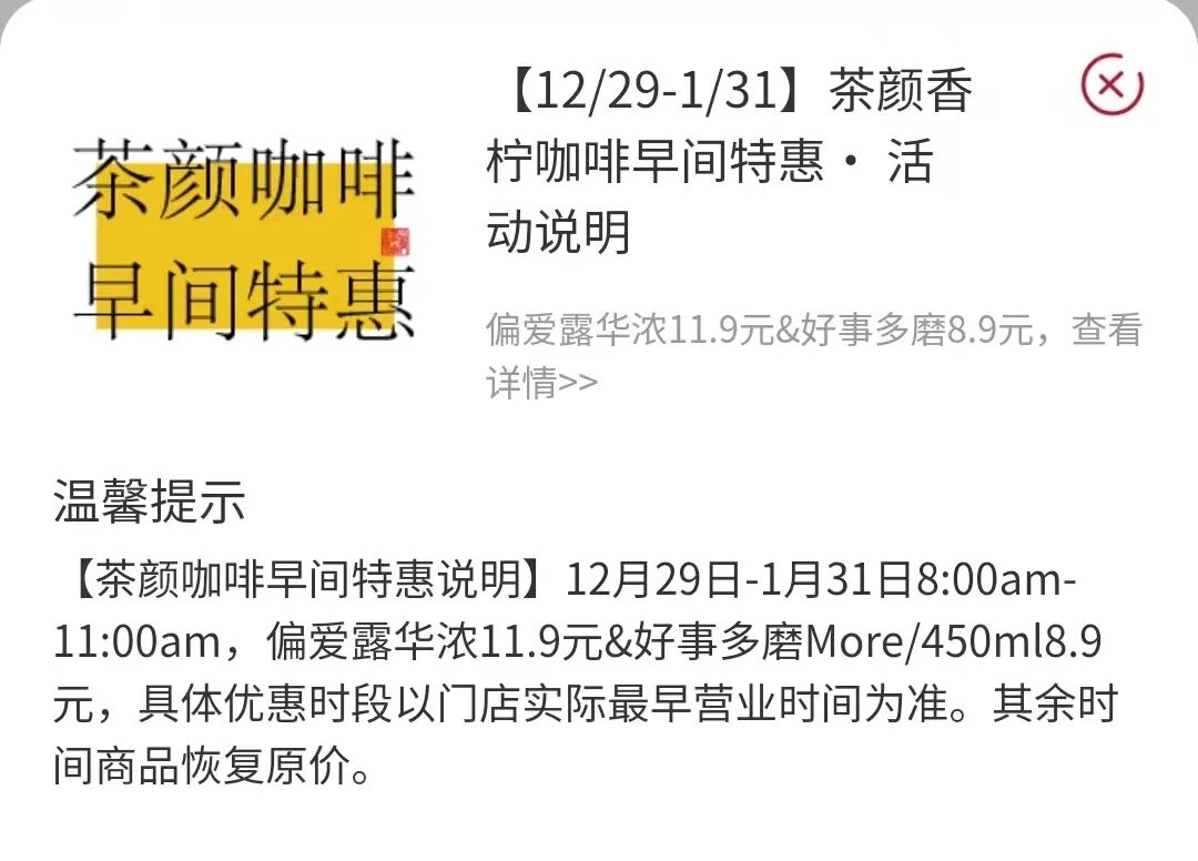 茶颜咖啡早间特惠