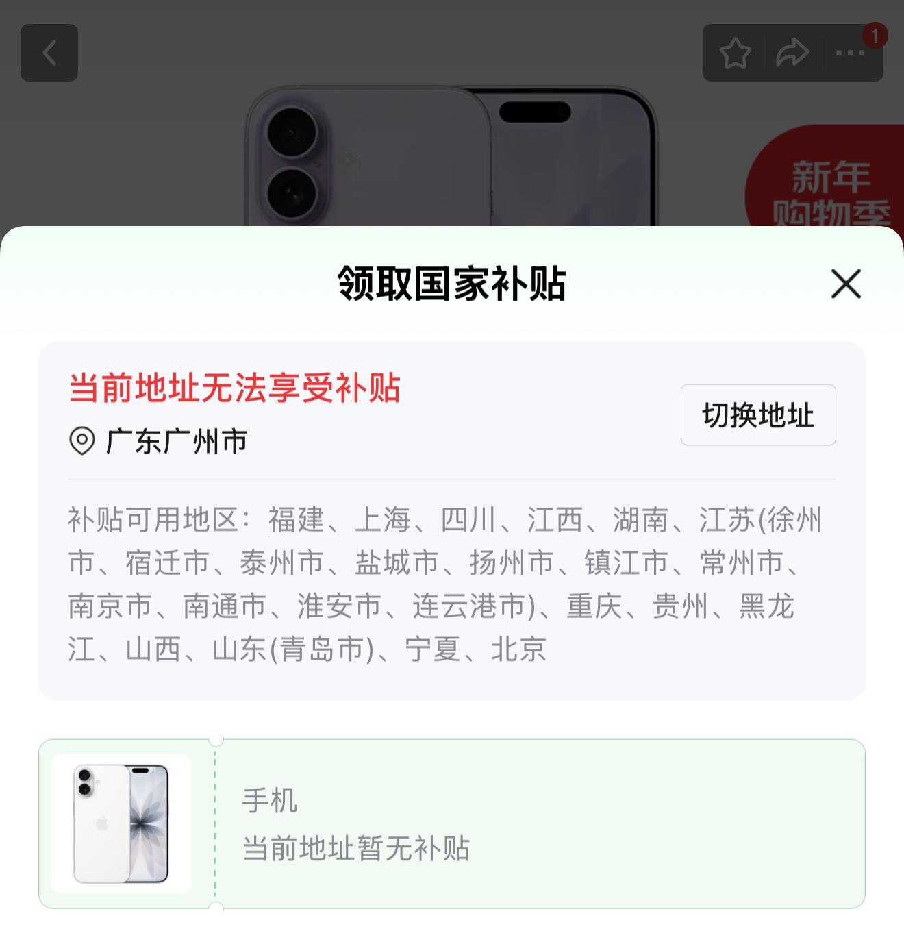 值得注意的是,小雷之前在京东自营的 iPhone 17 Pro Max 商品页面,已经领取过 6000 元以上手机的广东省补资格。