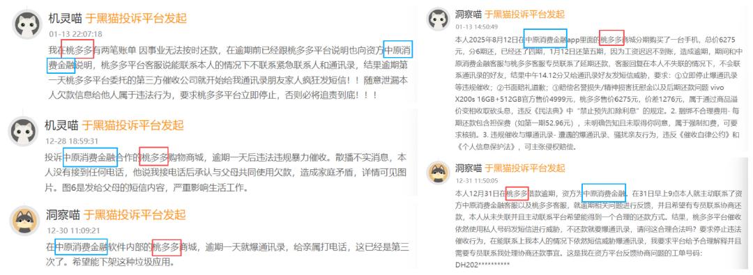 近期市场还关注到,中原消费金融可能与分期商城桃多多存在“隐秘”的金融服务合作,而桃多多正因商品高价溢价、暴力催收、额外收费等合规问题被用户投诉缠身。