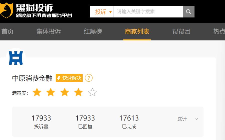 此外,中原消费金融在合作机构管理上的缺陷,也部分导致了客户投诉激增。在黑猫投诉平台,截至2026年1月19日,中原消费金融的投诉量已近1.8万条,主要涉及“暴力催收”“乱收费”“利率过高”等问题。