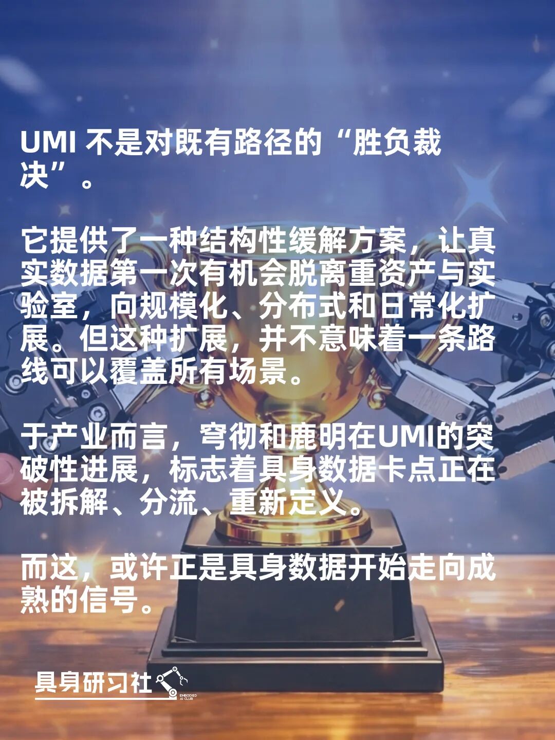 因此,与其说UMI带来了某种“颠覆”,不如说它提供了一种结构性缓解方案。它让真实数据第一次有机会脱离重资产与实验室,向规模化、分布式和日常化扩展。但这种扩展,并不意味着一条路线可以覆盖所有场景。