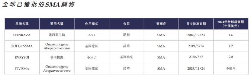 2024年,全球有约17.28万名SMA患者,中国有4.02万名SMA患者。根据弗若斯特沙利文的资料,全球SMA药物治疗市场预计将由2024年的46.4亿美元增长至2030年的59.32亿美元,2024年至2030年的复合年增长率为4.2%。