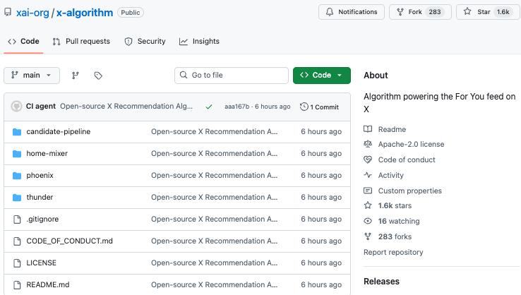 与此同时,相关的 GitHub 仓库也一并公开:https://github.com/xai-org/x-algorithm ,上线六小时便已经获得了 1.6k 个 Star。