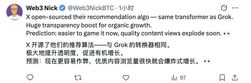 “我们将在 7 天内把 X 平台最新的内容推荐算法开源。”