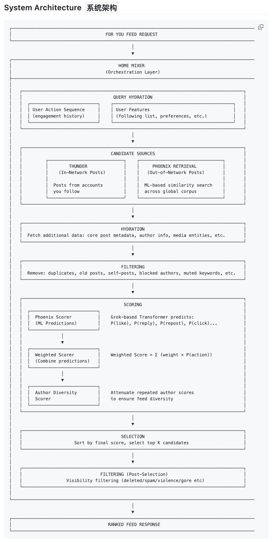 现在,一个基于Grok架构的Transformer模型,通过学习你的历史互动行为(你点赞过什么、回复过什么、转发过什么),来决定给你推荐什么内容。