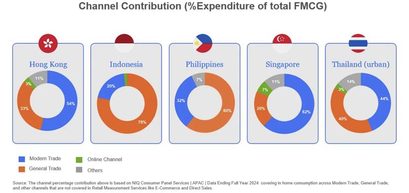传统渠道(尤其街头的sari-sari杂货小店)依然占据基本盘,是销量规模的决定性通路;现代渠道虽然在近年扩张迅速,但更多承担提高流通效率和品牌形象的作用;线上电商虽增长快,但在日常FMCG销售中仍属补充地位。