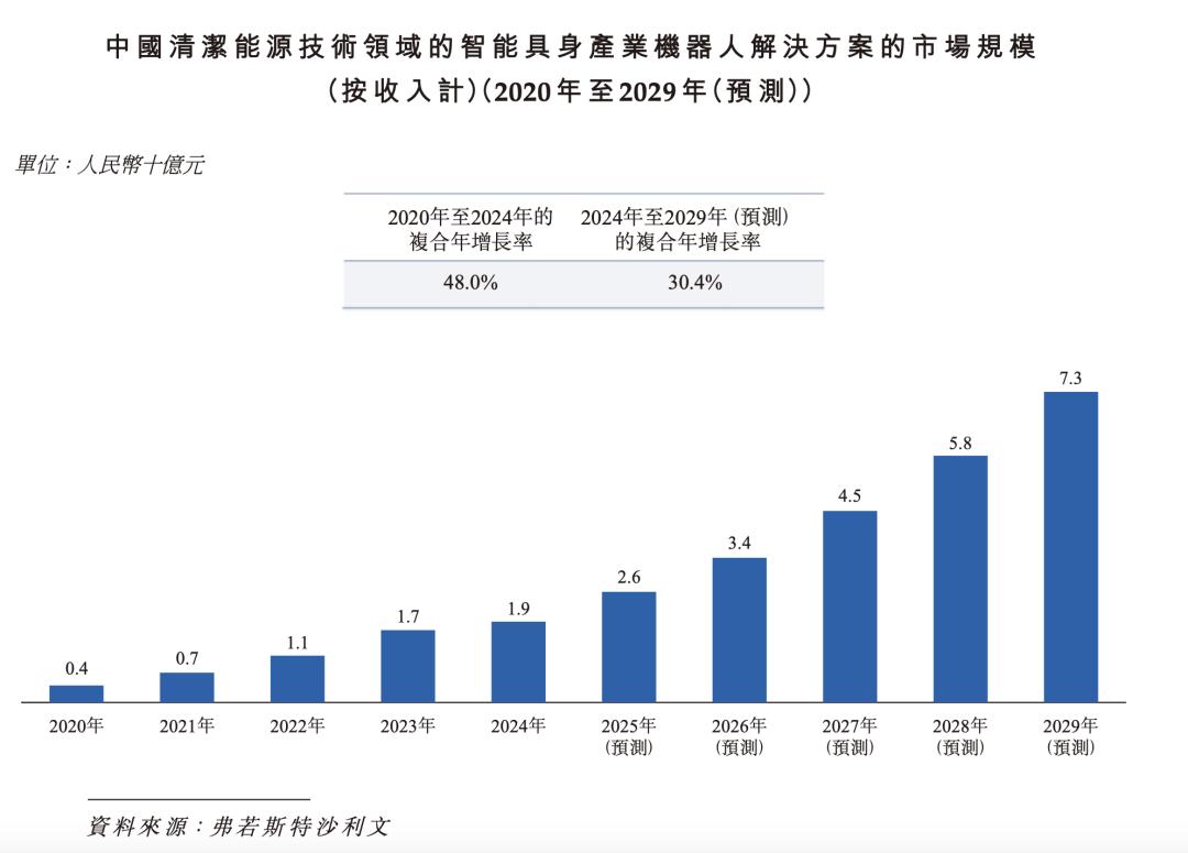 招股书显示,过去五年,中国具身AI机器人是全球市场的核心增长引擎,市场规模从2020年的125亿元增长至2024年的287亿元,复合年增长率达到23.1%。预计到2029年,具身AI机器人的市场规模将达到1101亿元,2024年至2029年的复合年增长率将进一步提升至30.9%。