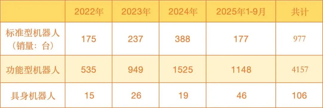 2025年,具身机器人销量、销售额都明显增长,但总体规模还很小。这也行业比较残酷的地方:具身智能产业场景还很少,主要是教学、展示用途。
