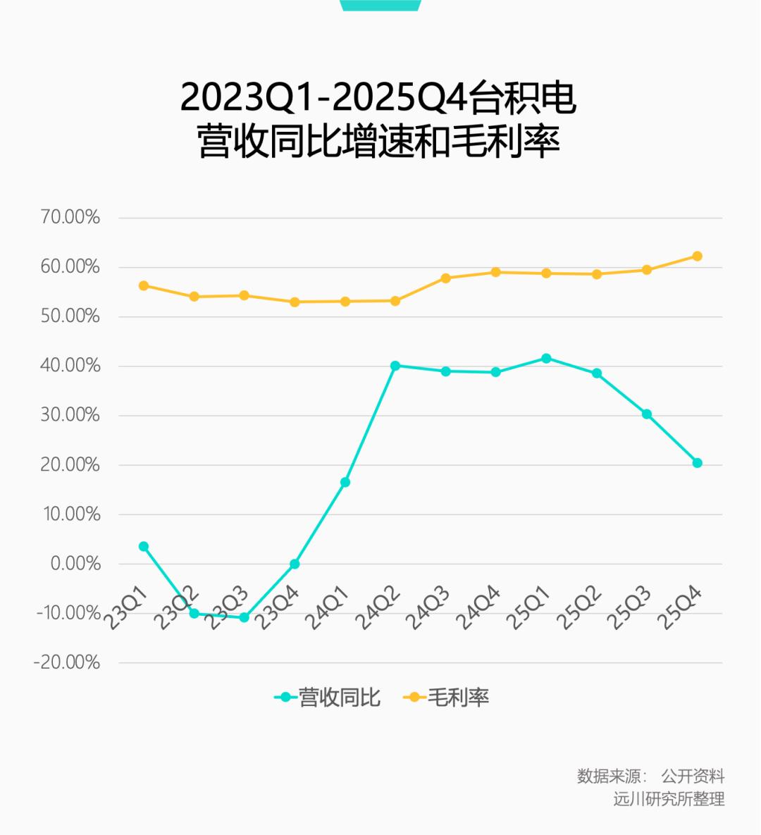 2025年四季度财报,台积电多项指标大超预期,营收连续八季度同比增长,视产业周期如无物;毛利率超过60%直逼软件巨头,让制造业同行侧目,三星见了咬碎了牙,特斯拉听了羡慕嫉妒恨。