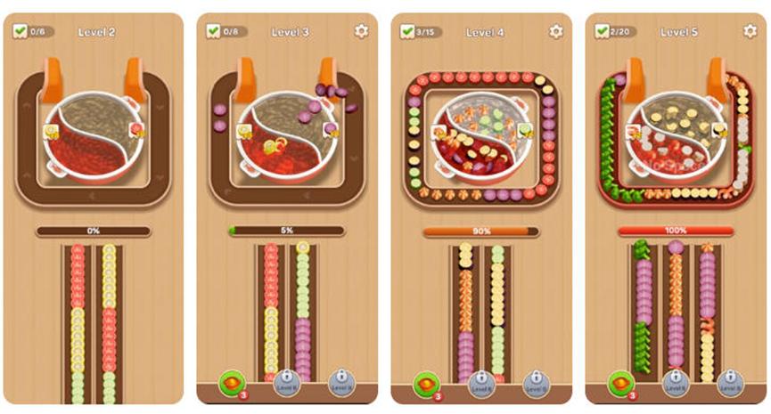 首先是 Zego Studio 上线的「Hotpot Flow」,虽然名字里带了个“Flow”,但实际体验其实更像「Card Factory」;只不过主题不再是整理卡牌,而是和做菜搭上了关系,变成了“回转火锅”。主打接地气。