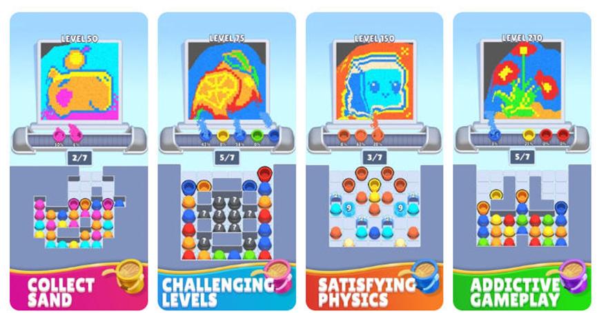 Voodoo的「Sand Loop」尝试把消除对象从像素画变成沙画,再配上相应的物理效果 | 图片来源:AppMagic