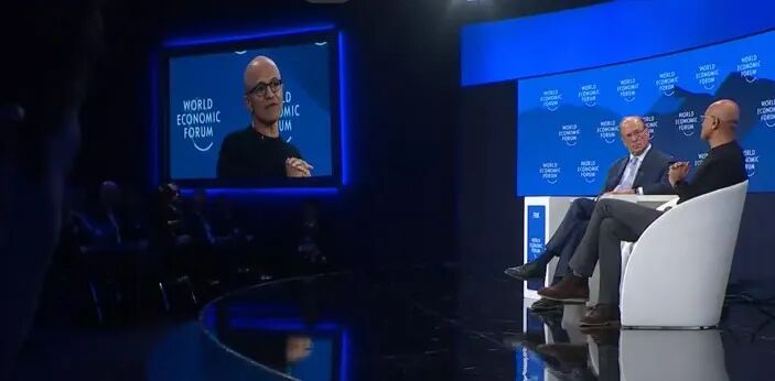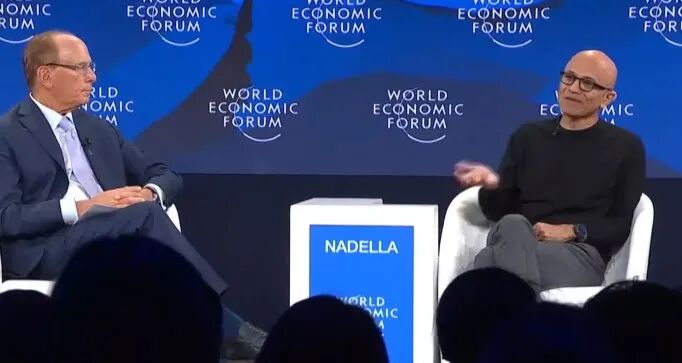 在2026年的世界经济论坛上,微软 CEO 萨提亚·纳德拉(Satya Nadella)与贝莱德 CEO 拉里·芬克(Larry Fink)进行了一场对话。