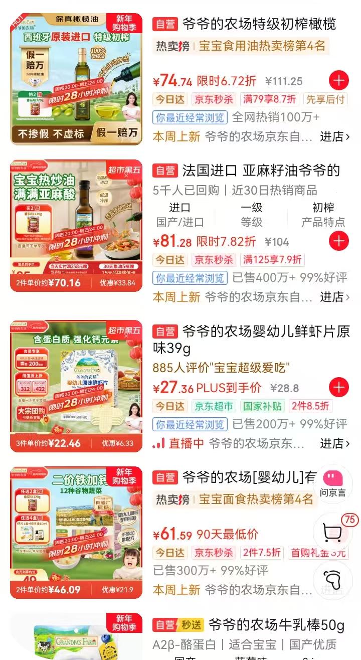 对于大多数宝妈来说,甄别婴幼儿食品的重要指标是价格,同样的商品,价格高的肯定更安全、更健康,价格太低会让人不放心,而爷爷的农场也掐住了宝妈们的心理。