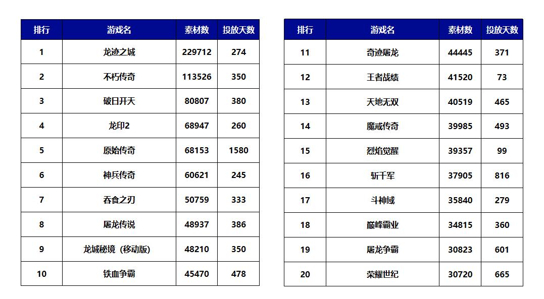 (二)传奇类游戏投放排名情况