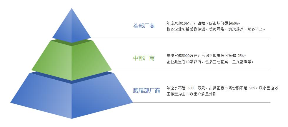传奇游戏厂商呈现明显的多层级分布特征,形成“头部集中、中部跟随、尾部分散”的市场格局: