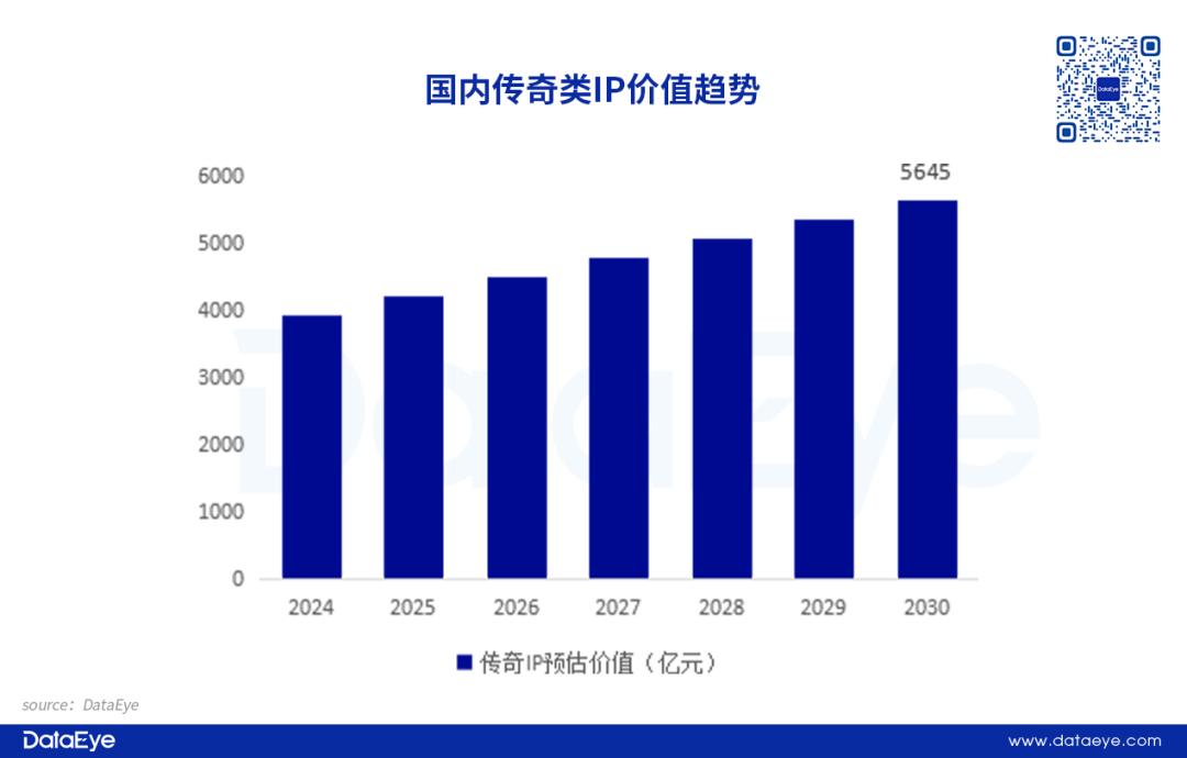 2001年上线的《热血传奇》为核心,历经20余年沉淀已构建起覆盖多领域的庞大价值生态。结合艾瑞咨询《2024年中国传奇游戏市场研究白皮书》估算数据显示,2001年至2023年传奇IP价值约为3647.8亿元。进入2024年后,受益于IP版权合规等因素,年平均产生价值预估升至285.3亿,因此在2030年传奇IP进入中国市场30年之际,传奇IP整体价值有望达到5645亿元。