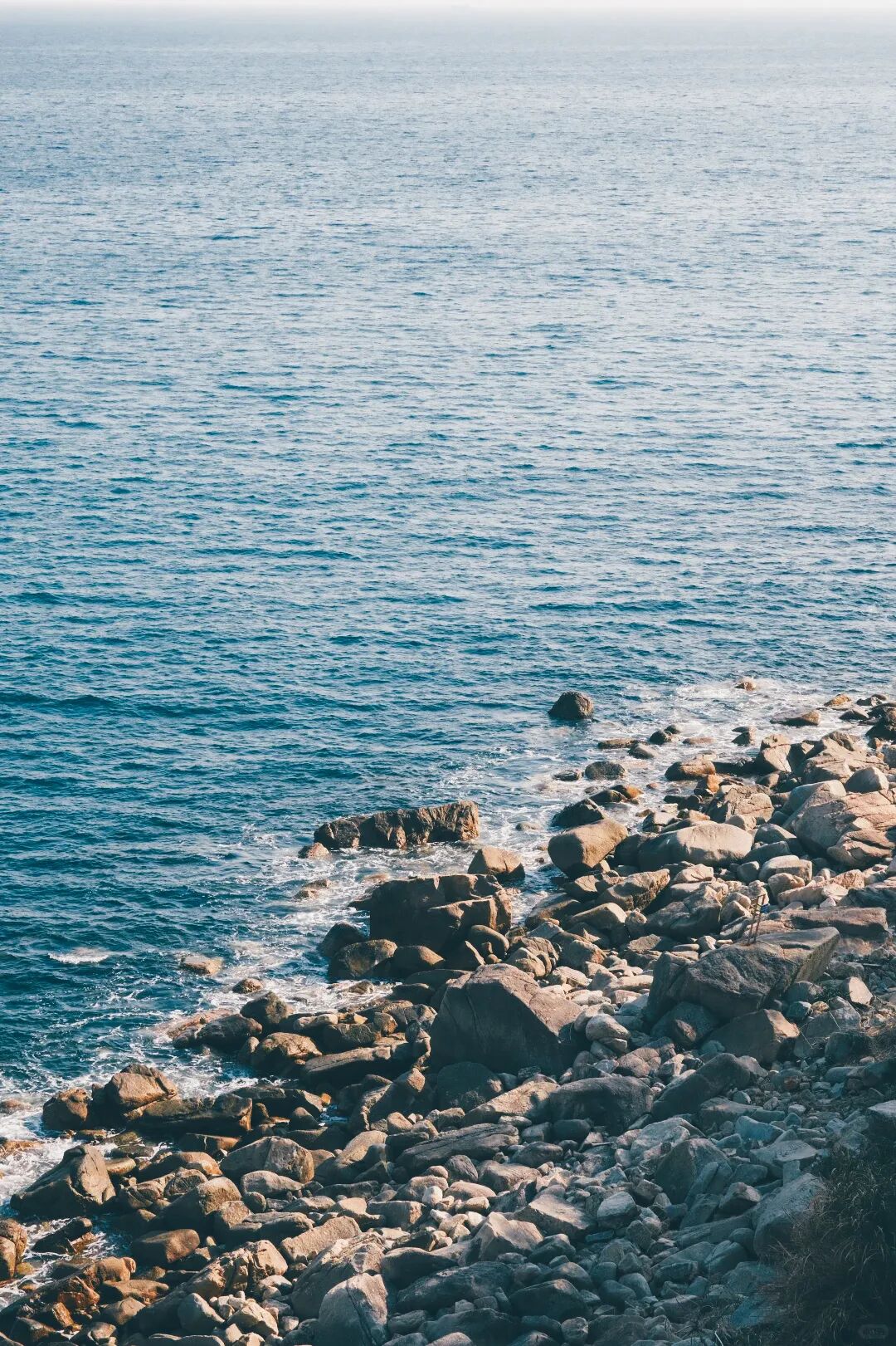 徒步通常从东涌沙滩起步。最初的平缓很快结束,迎接你的是大片被海浪冲刷得光润又形态各异的黑色礁石。行走于此,你要快速判断下一个稳固的落脚点,手脚时常需要协同以保持平衡。海风咸湿,阳光直射,身体的每一个关节似乎都醒了过来。当你喘着粗气,终于成功翻越第一个小山头,整片海湾会以一种意想不到的壮阔回馈你:一片由浅至深的、全景的蓝,是给愿意付出汗水者的第一份犒赏。