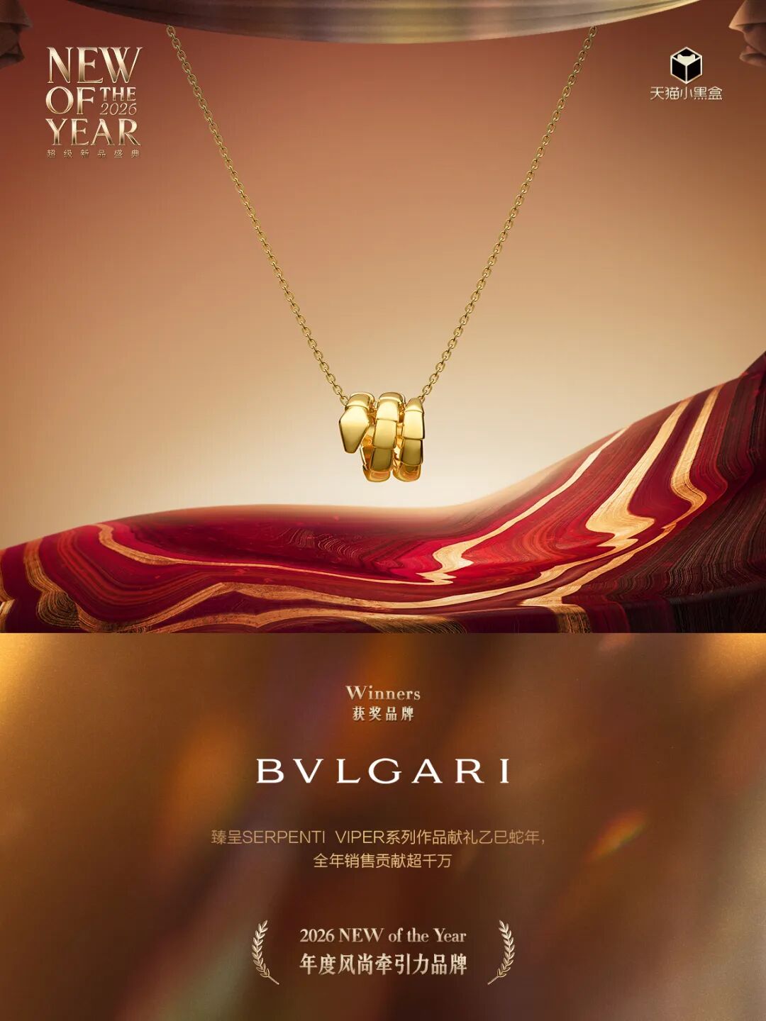 宝格丽Serpenti Viper系列新品就是典型。从策略来看,它并没有遵循传统陈列与强曝光的奢品上新套路,而是把新品先放进一个更容易被讨论和理解的语境。品牌在CNY节点,对经典灵蛇系列进行结构性调整同时在天猫线上独家首发:强化黄金材质的节日情绪,同时引入迷你尺寸,将其佩戴场景融入更为日常的语境中。