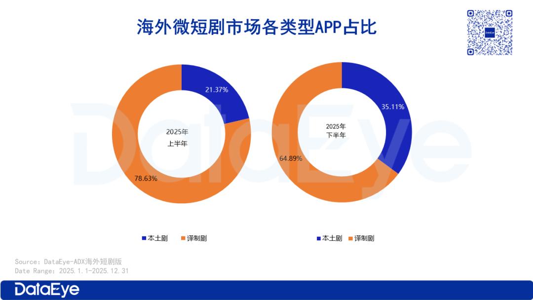 截至2025年12月,海外免费类微短剧APP占比超60%,与1月时形成鲜明对比。