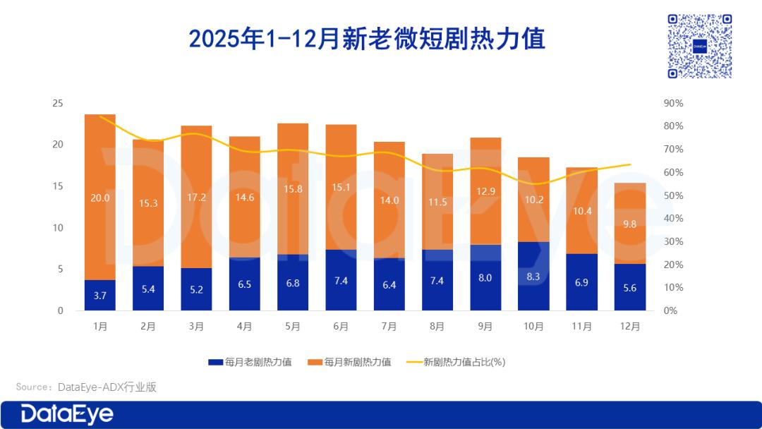 ADX行业版数据显示:2025年新剧的热力值总额超过了160亿元,占比约68%。
