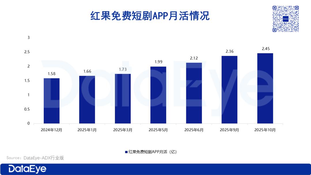 下半年,10月红果月活再次提升至2.45亿增速维持在3%-4%,增长逻辑转向“存量用户高粘性运营”,用户日均使用时长破120分钟。
