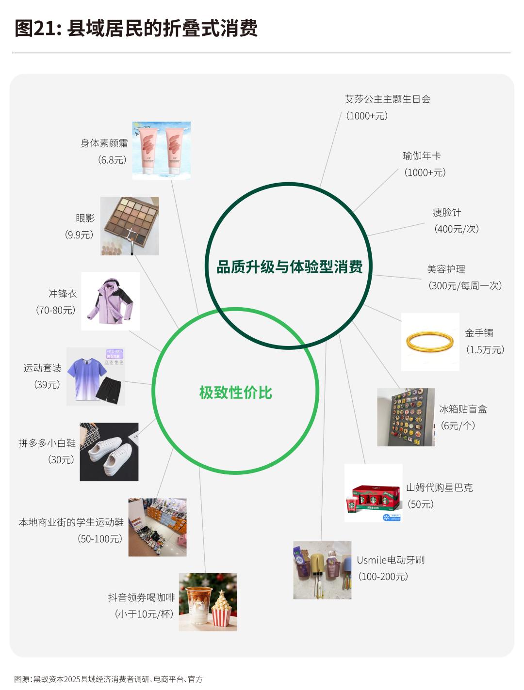•县域的“折叠”,是消费升级与极致低价并存的智慧。它既包括县域居民在某些品类的大跨步升级,也有因仍不高的收入事实而形成的、与高线城市截然不同的消费决策树。