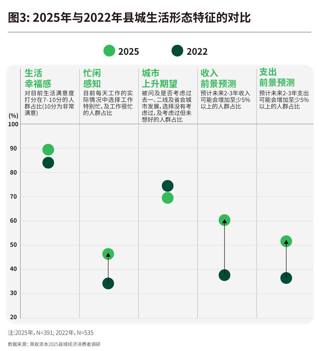通过对比2022年与2025年的调研数据,我们希望在宏观层面观察县城居民整体心态——包括生活满意度、城市归属感与发展预期等——所发生的位移与沉淀。