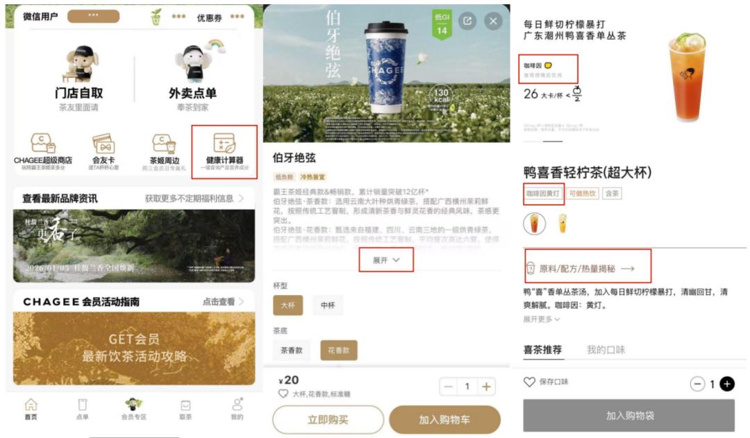 并且,消费者只需点击“原料/配方/热量揭秘”,就能了解产品配方。