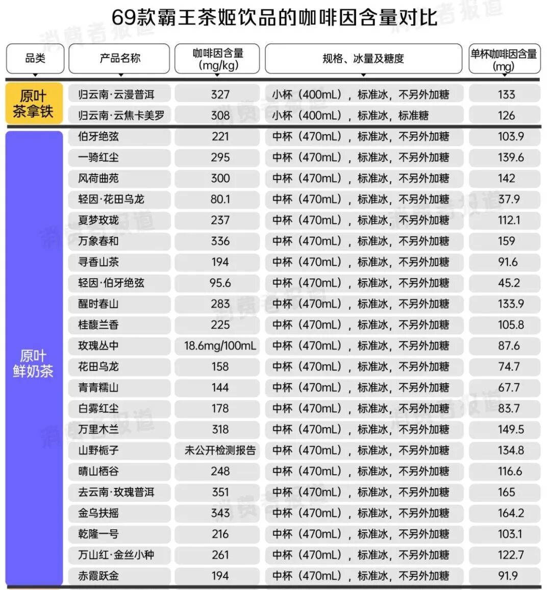 [2]. 咖啡因多到睡不着?我们对比了69款奶茶发现,“伯牙绝弦”含量其实不高-消费者报道