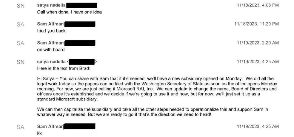 不仅办齐了全部的法律手续和相关文件,而且将其命名为「微软RAI公司」,即负责任的人工智能。万事俱备,只待周一工作人员上班正式提交。