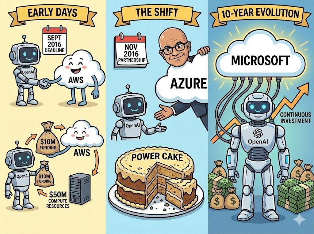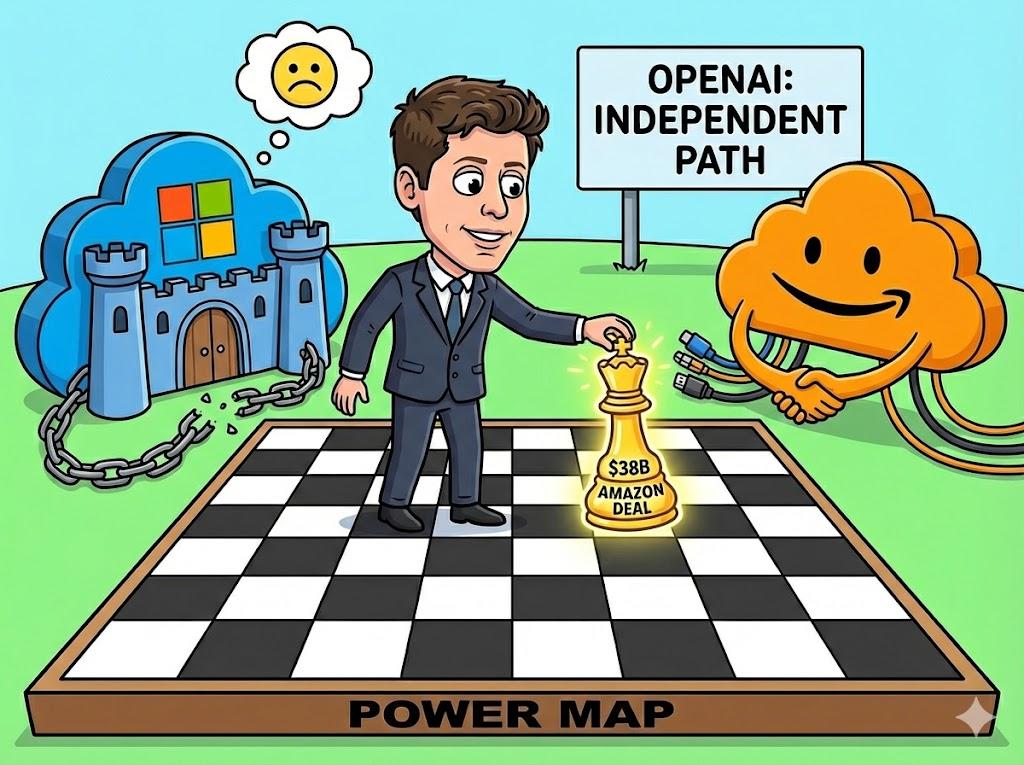 重组计划落地刚过6天,他就迅速与之前眉来眼去的亚马逊签下了一份高达380亿美元的基础设施协议,在合同条款中解除了“新云端工作负载必须由微软优先承接”的硬性约束。