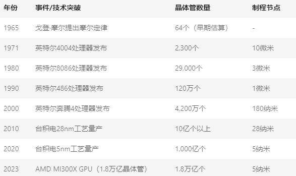 1965年,英特尔联合创始人戈登·摩尔观察到集成电路上的晶体管数量上的变化,提出了著名的“摩尔定律”: