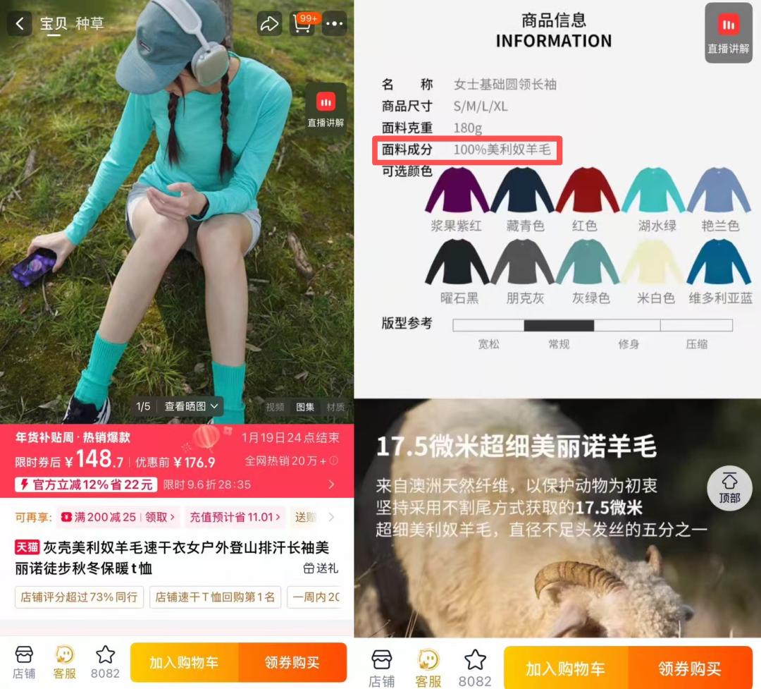 尤为引人注目的是,在泛户外场景,羊毛运动服饰GMV同比提升58%,其中美丽诺羊毛产品增幅达119%。