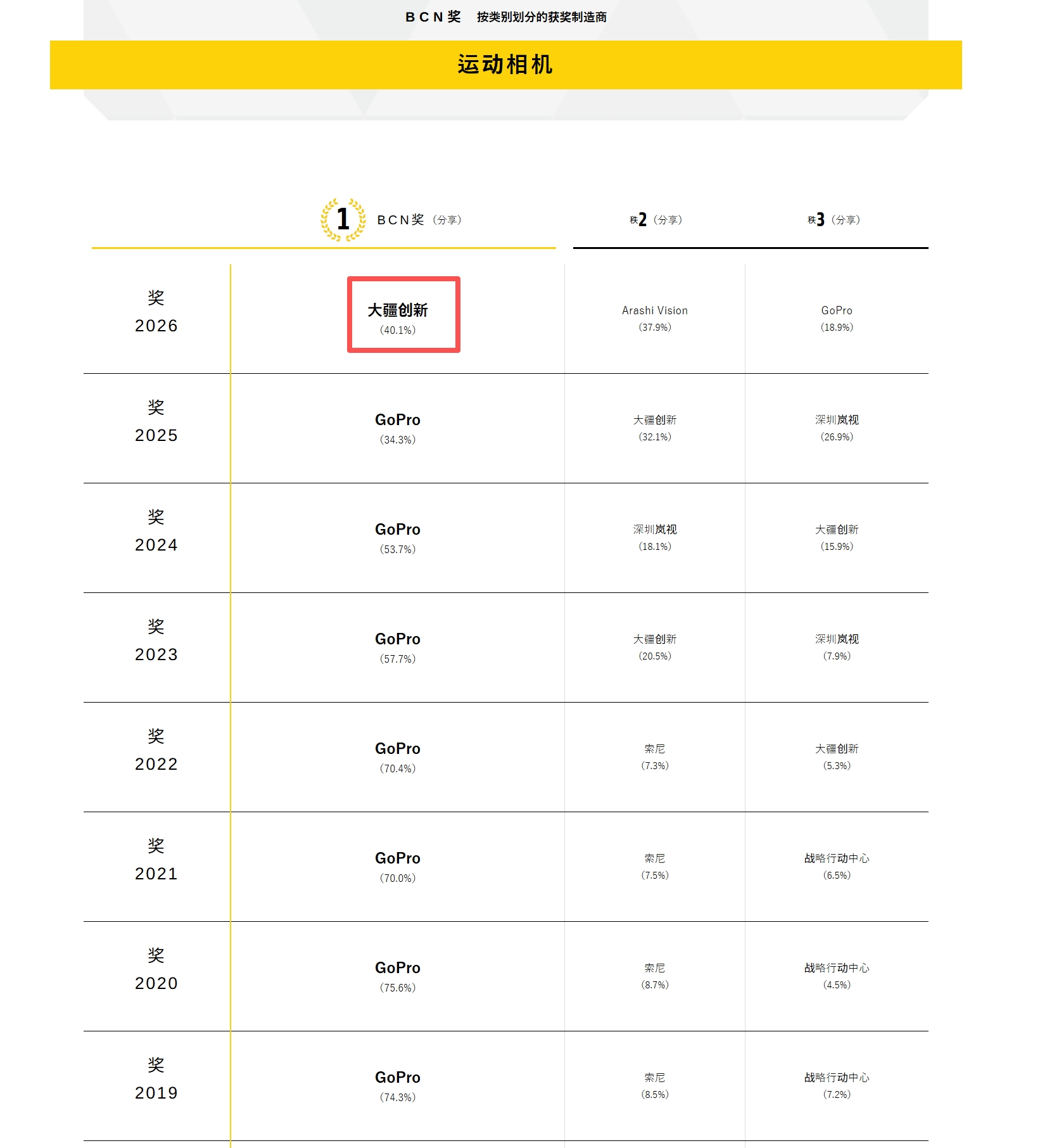 近日,全球无人机及影像头部企业DJI大疆在日本市场再获重磅殊荣。日本权威零售分析机构BCN+R于2026年1月19日正式向大疆颁发“BCN AWARD 2026”两大年度奖项,大疆一举包揽“数码摄像机”与“运动相机”两大品类年度销量冠军。其中,在竞争激烈的运动相机领域,大疆凭借Osmo Action系列、Osmo 360全景相机以及Osmo Nano穿戴相机等产品的卓越表现,首次夺得该品类年度销量第一,标志着大疆在运动影像领域已建立起全面的市场领先优势。