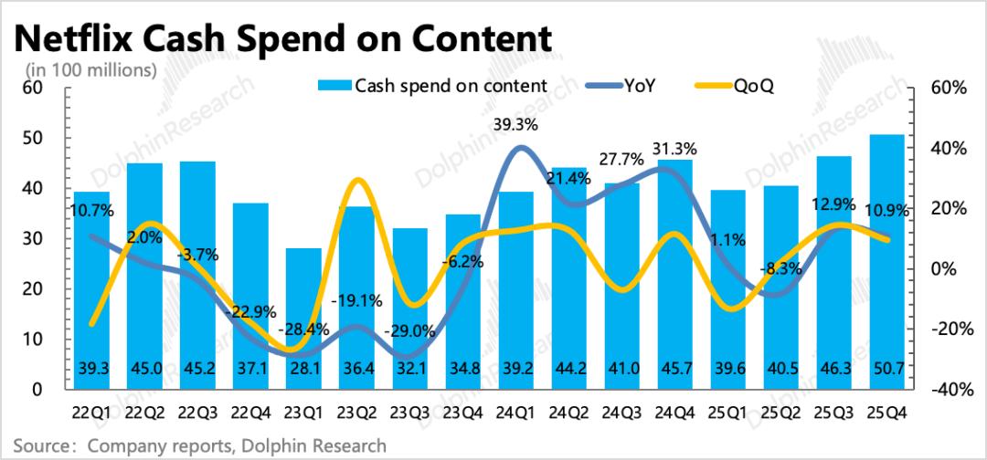 Netflix透露 2026年的内容投入规模将相比2025年增加10%,也就是大约195亿左右。但考虑到因收购WBD而带来的利息负担和现金流压力,我们认为今年实际内容投入可能也会如去年一样有所控制。