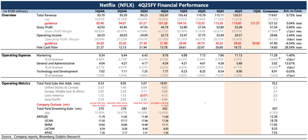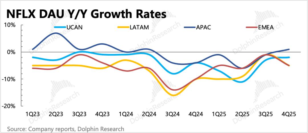 1. Q4超预期:财报好的一面是已过去的四季度表现不错,收入、利润均超出预期(存在剩余巴西税费延至26年补缴带来的扰动),且本身存在加速增长的良好趋势,主要得益于四季度《Stranger Things》最终季的热播。