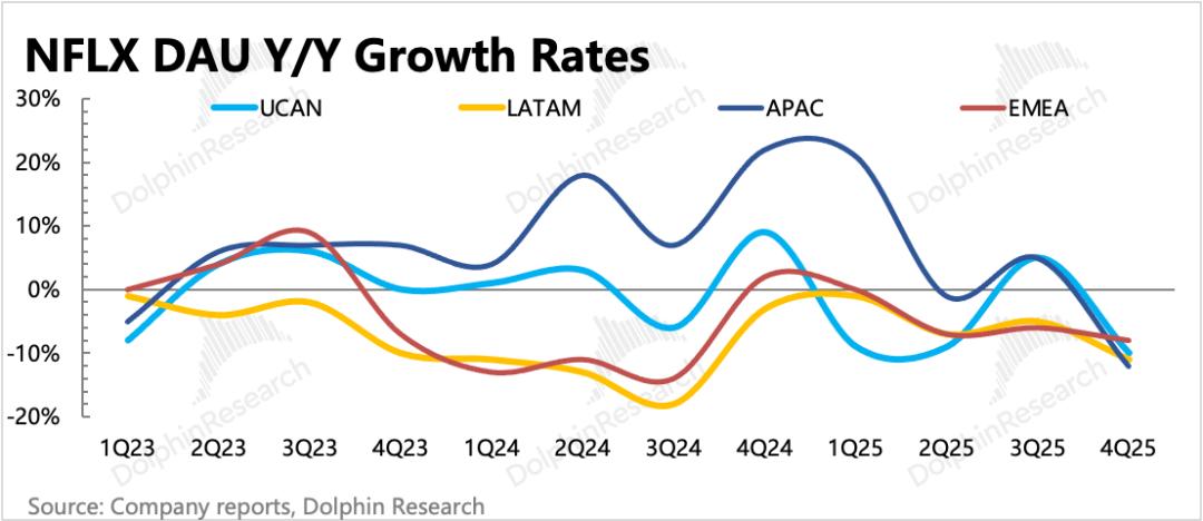 而在非成熟地区,涨价则很容易打压用户规模的增长趋势,因此Netflix涨价频次不高。4Q25当季主要针对阿根廷地区一年内第三次涨价,这纯粹是为了缓冲汇率影响。