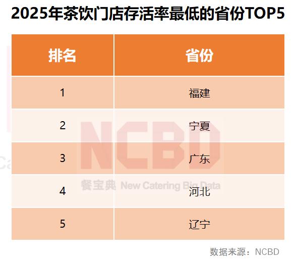 二是区域内茶饮店存活率低。白皮书显示,茶饮店存活率最低的五个省分别是:福建、宁夏、广东、河北、辽宁。其中,广东和福建正是茶饮内卷指数的第一和第三。