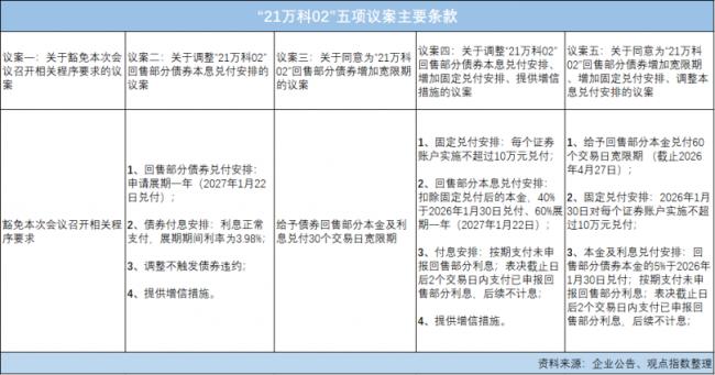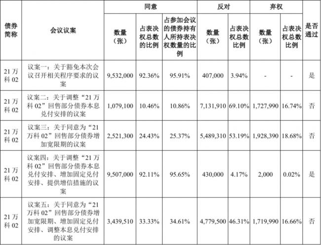 不出意外地,“21万科02”债券持有人会议上最终通过的只有议案一以及后来补充的议案四。