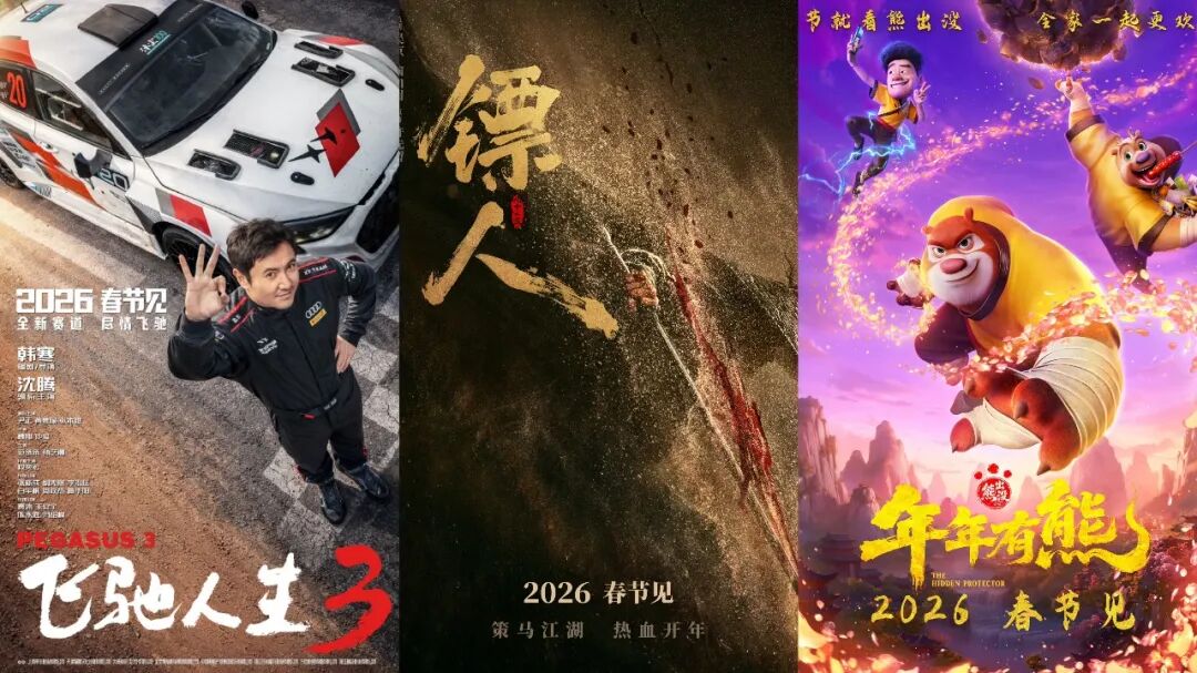 截止到1月21日,仅有《飞驰人生3》《镖人:风起大漠》以及《熊出没:年年有熊》三部电影官宣定档2026年春节,其中“熊出没”系列还是每年春节档的固定嘉宾,春节档完整片单迟迟未定。