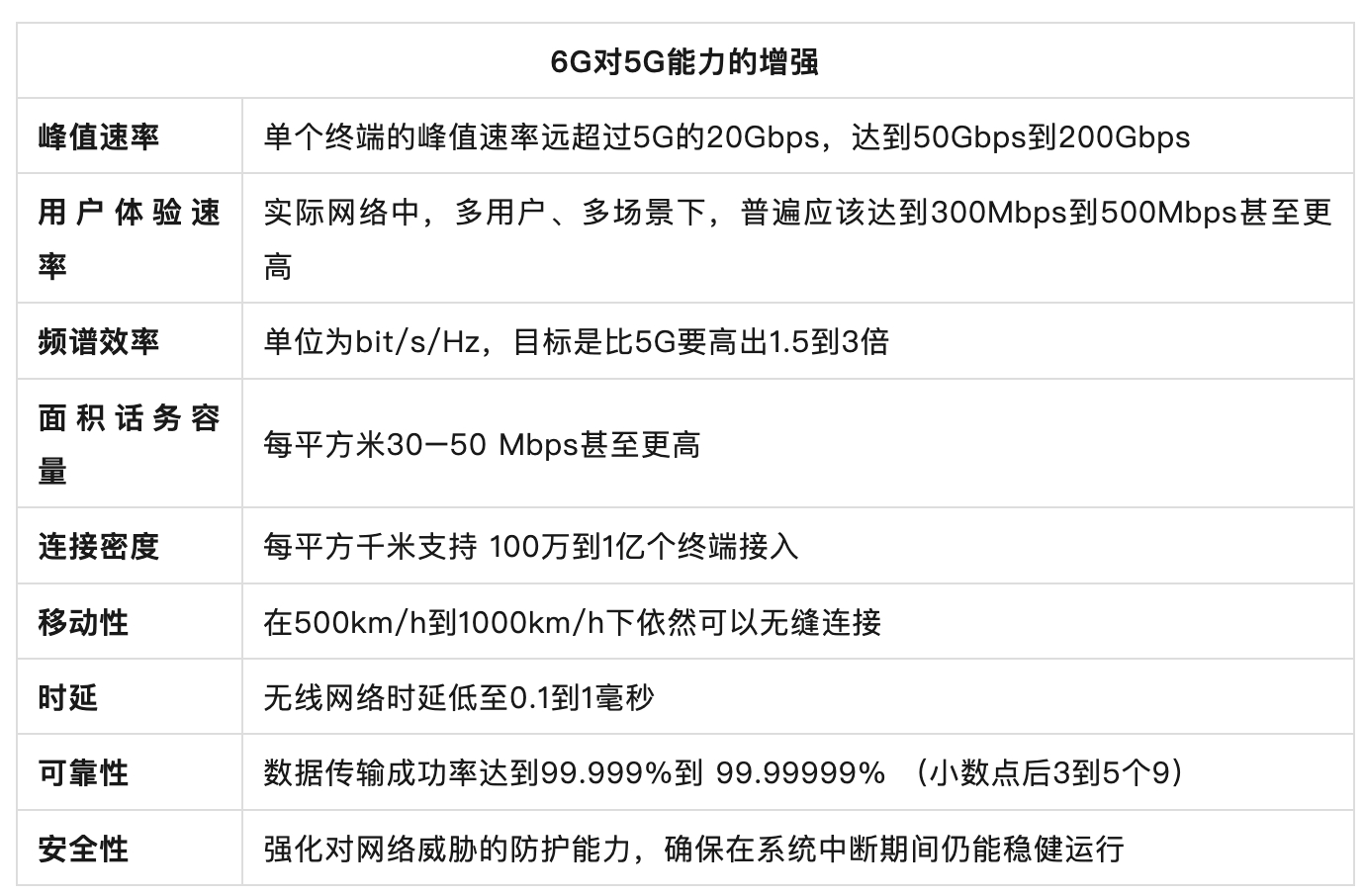 需要注意的是,6G愿景中定义的指标还比较模糊,很多都没有量化。随着6G标准研究的不断深入,指标数据会更具体。