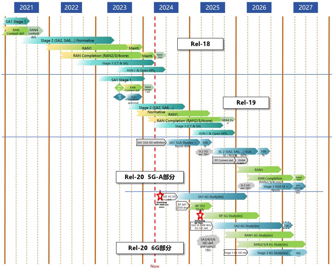 2024年3月,3GPP CT、SA和RAN第103次全体会议进一步讨论了最新的6G推进时间表。
